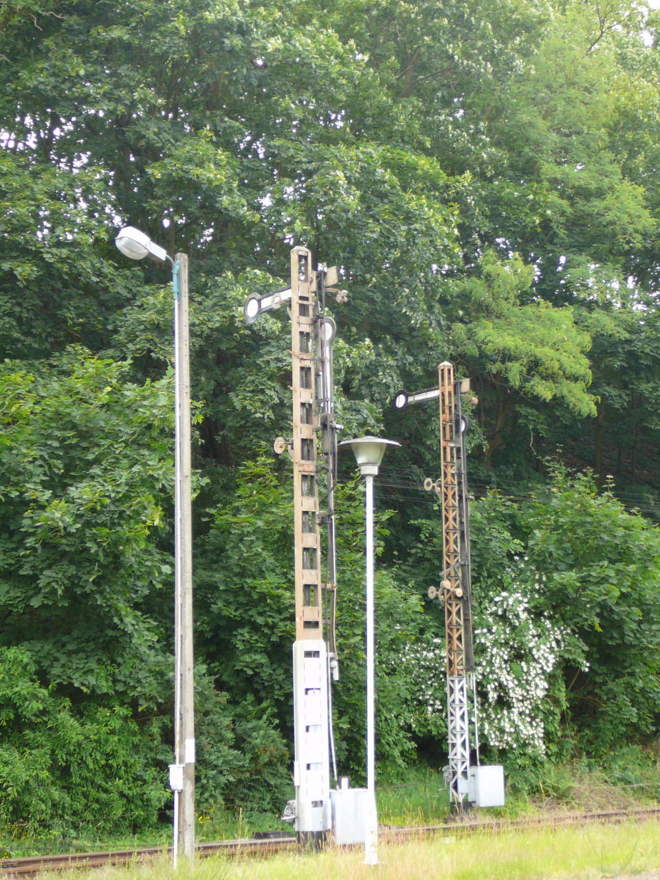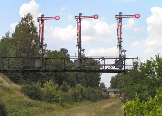 Słynne międzychodzkie semafory wjazdowe. Od lewej: