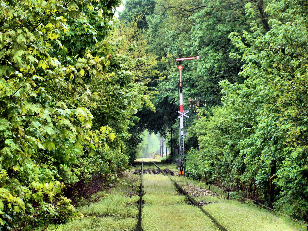 Ale to już nie to samo. Nastawnie zabite deskami, semafory niesprawne, ruch znikomy. Pozostał tylko okazjonalny parowóz pociągu turystycznego, toczący się po szlaku z wolna zwyciężanym przez naturę.