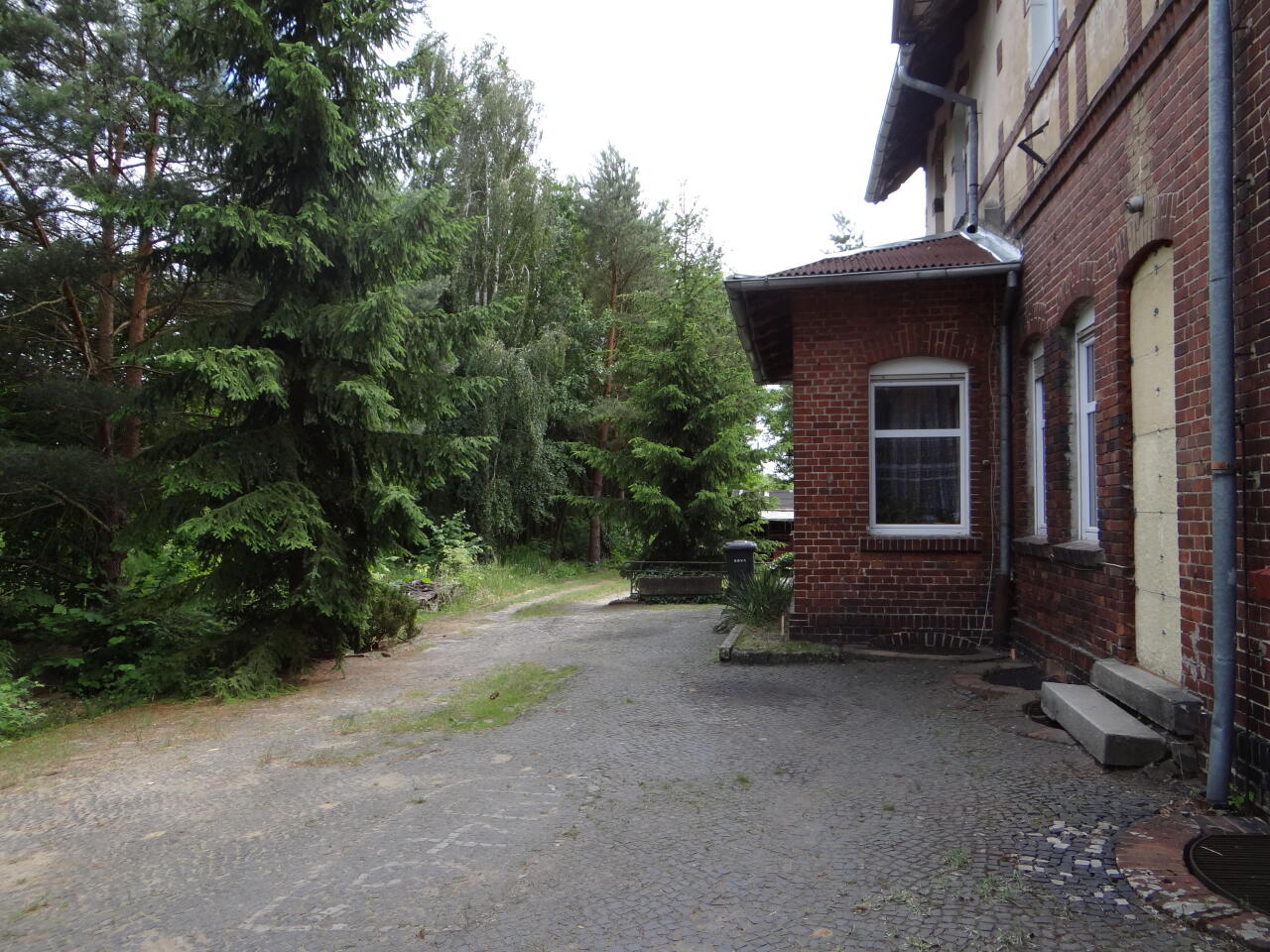 Budynek dworca adaptowany do innych celów 2008-09-24: Ślady po nastawni południowej, dół po pędniach niedaleko nastawni. |