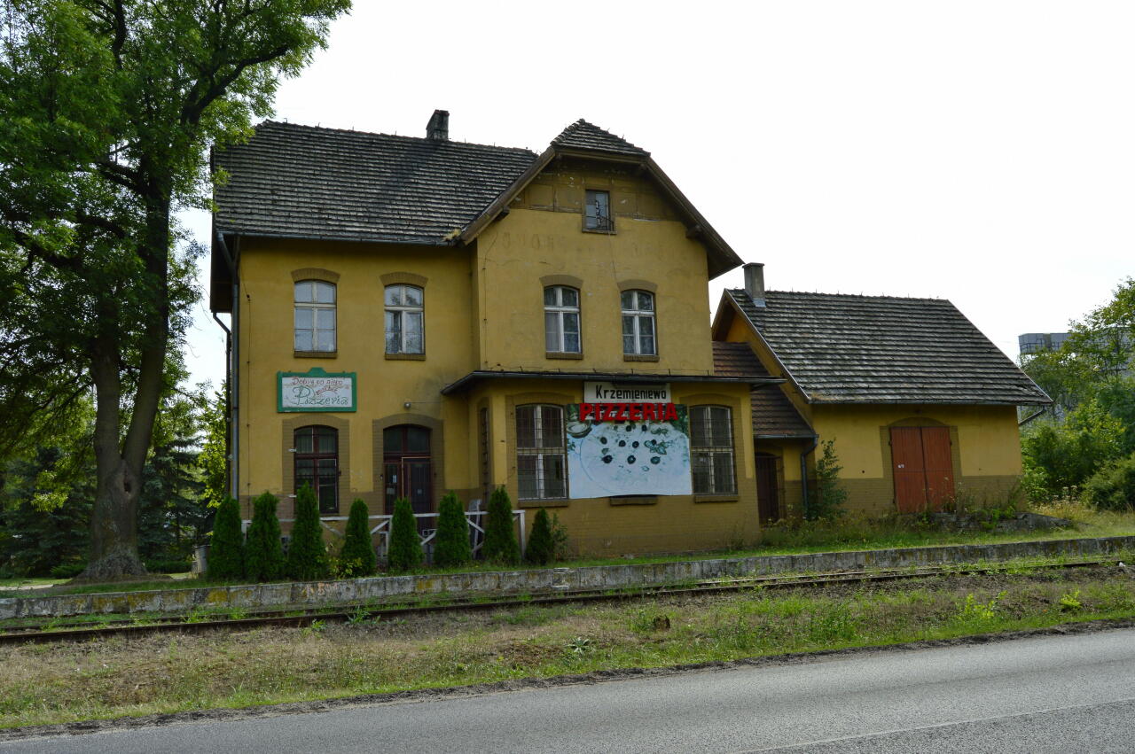 budynki dworcowe: | adaptowany do innych celów, na parterze znajduje się pizzeria | |