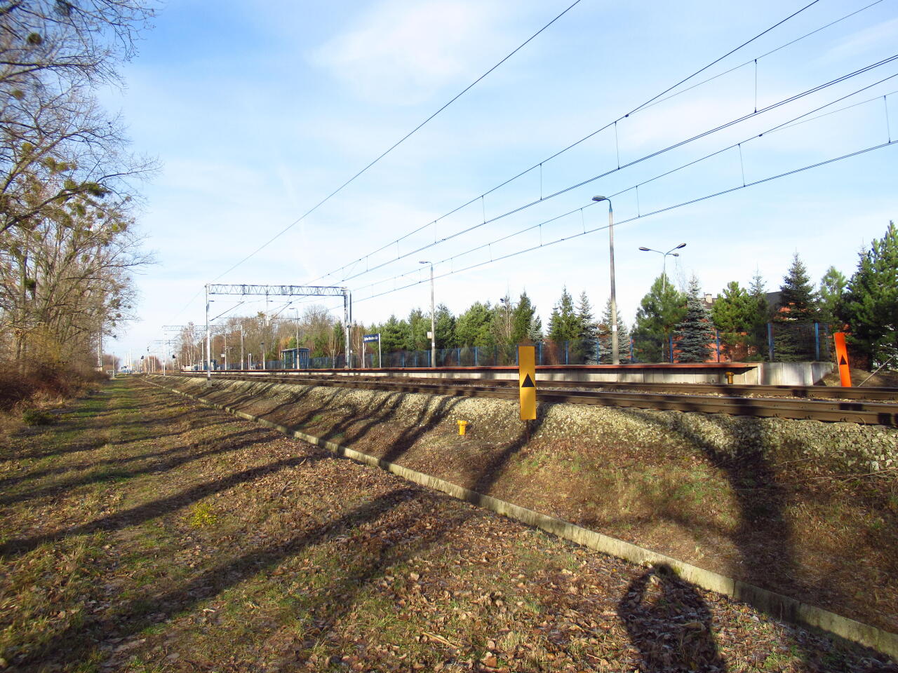 Opis ogólny: Na peronie stoi blaszana wiata. Opis infrastruktury: Obecnie po przebudowie istnieją dwa tory oraz dwa perony z wiatami po dwie na peron , przejazd sterowany automatycznie z zaporami (info: Jan Mazurkiewicz, 20-11-2008) Opis budynków: Budynek dawnego posterunku dróżnika ceglany z drewnianą nadbudową( przy torze w kierunku Wrocławia) który pełnił funkcję też i nastawni oraz kasy rozebrano w 2008 roku . Istniał jeszcze parterowy budynek po przeciwnej stronie toru pełnił on funkcję kasy i poczekalni zlikwidowany w latach 80-tych XX wieku. Z budynków pozostał tylko szalet przy torach w kierunku Wrocławia (info: Jan Mazurkiewicz, 20-11-2008) |