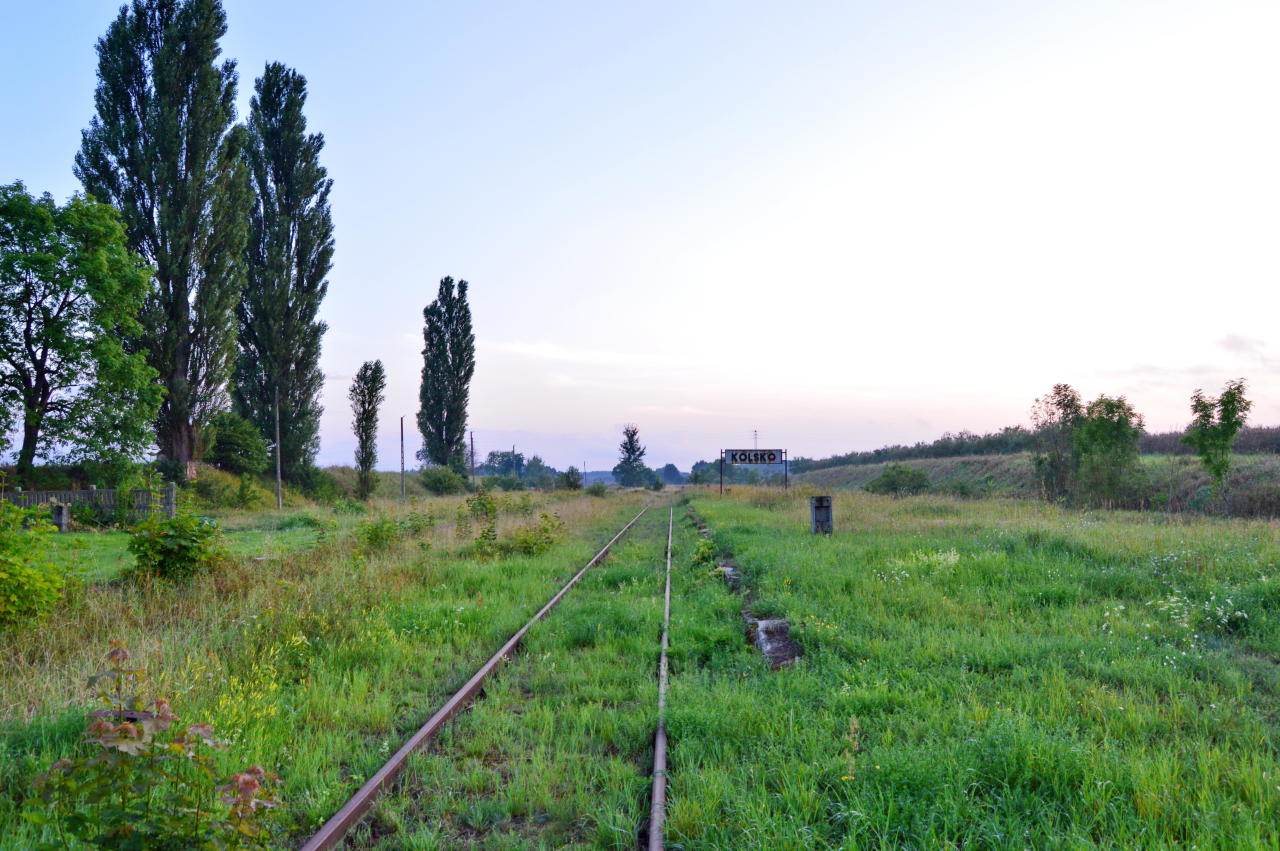 Ol49 na stacji Kolsko w rok po zawieszeniu kursowania pociągów pasażerskich na odcinku Nowa Sól - Wolsztyn. Stacja zamknięta ale semafory jeszcze stoją, a na równi panuje ład. Widok w kierunku północnego-wschodu - wyjazdy do Wolsztyna i Sławy Śląskiej.