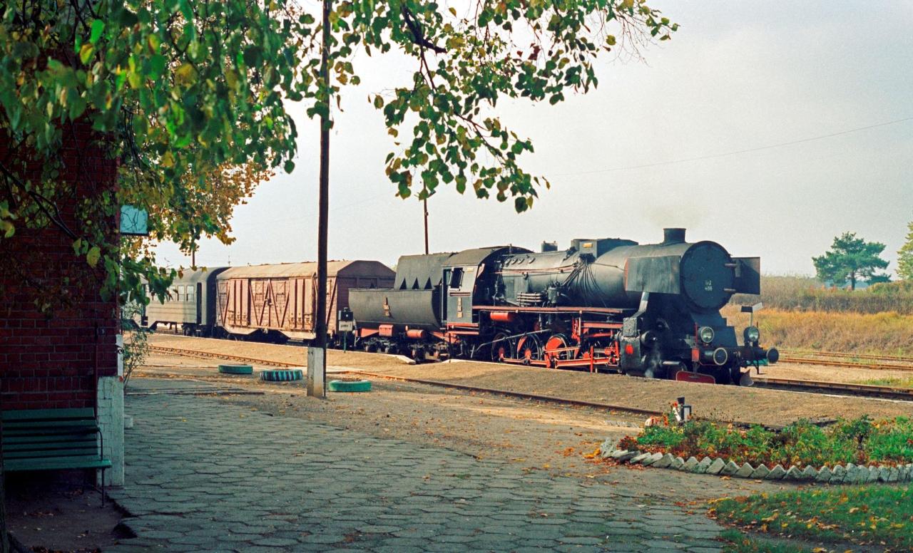 Ty2-406 wykonująca prace zdawcze na stacji w Kolsku. Z lewej budynek dworca z przybudówką nastawni dysponującej. Widok w stronę Konotopu/Nowej Soli.
