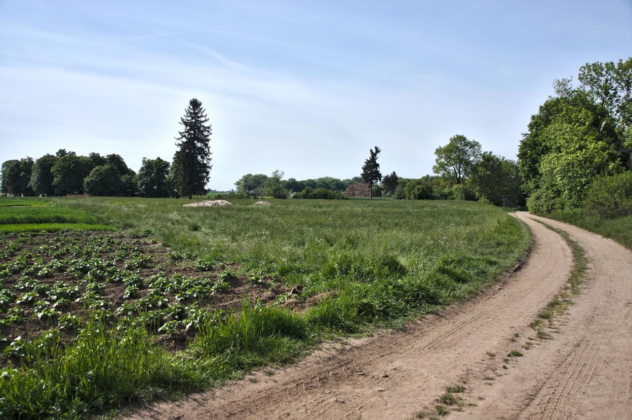 Opis ogólny: Miejsce po stacji jest na południe za wsią, w pobliżu cmentarza. Widać tam duży płaski plac z niewielą skarpą na południu. |