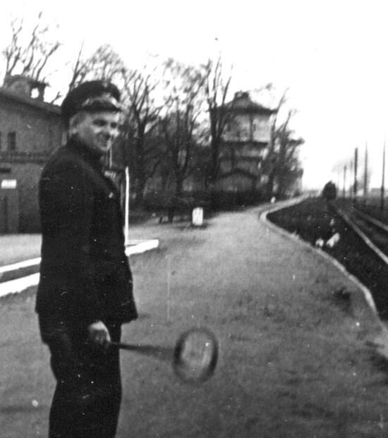 Peron na stacji Rudna Gwizdanów. Stojący kolejarz to długoletni bileter –Pan Stasiuk.