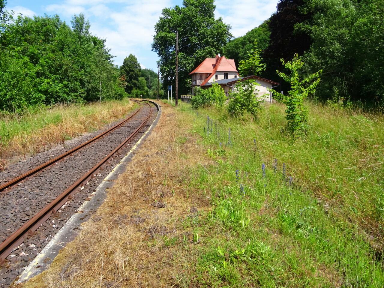Opis ogólny: 3 tory. Semaforów na pewno nie było już w 1975. Wygląd peronu się trochę zmienił - została posiana trawa, położono płyty chodnikowe i posadzono wiele krzewów. Na wiosnę chcę naprawić elewację od strony jezdni. RYSZARD LEDWON - mieszkaniec budynku stacji Stacja pełniła rolę małego węzła - odchodziła z niej bocznica do pobliskich wapienników. Do dziś wyraźnie widoczne jest ułożenie toru który obniżał się w stosunku do szlaku jeleniogórskiego i przeprawą nad kanałem rzeki Bóbr odbijał w kierunku południowo zachodnim. (info: Andrzej Sibilski, 09-01-2014) Opis infrastruktury: Do dziś w stacji zachowały się dwa tory. Główny zasadniczy pierwszy i boczny ładunkowy trzeci przy którym jeszcze w 2002 roku prowadzono załadunek drewna. Tor trzeci wyposażony jest w dwie wykolejnice. Kluczami do rozjazdów i wykolejnic dysponuje stacja Wleń. Tor główny dodatkowy drugi został rozebrany. (info: Andrzej Sibilski, 09-01-2014) Opis budynków: Na stacji do dziś mimo adaptacji budynków do innych celów funkcjonuje poczekalnia letnia zmodernizowana w 2013 roku. (info: Andrzej Sibilski, 09-01-2014) |