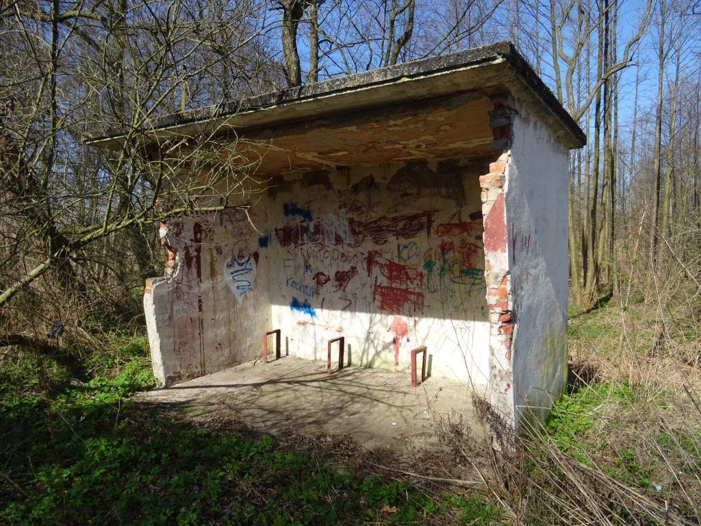 | Opis ogólny: Uchowała się tylko wiata stacyjna, miejsce gdzie kiedyś był peron jest mocno zarośnięte. |