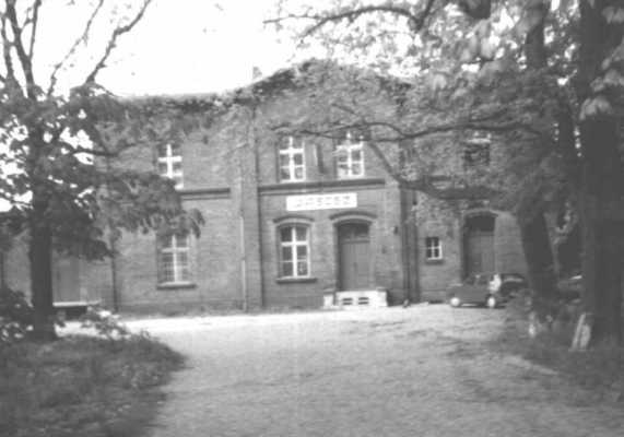 Budynek dworca od strony peronów i wjazdu z Rawicza. Na parterze, w przybudówce mieściła się nastawnia dysponująca. Widok w kierunku południowo-wschodnim. Ze zbiorów Adama Pacześniaka.