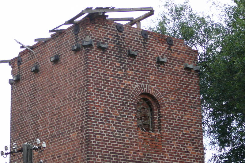 Wąsosz. Górna część wieży wodnej ze szczątkami dachu.