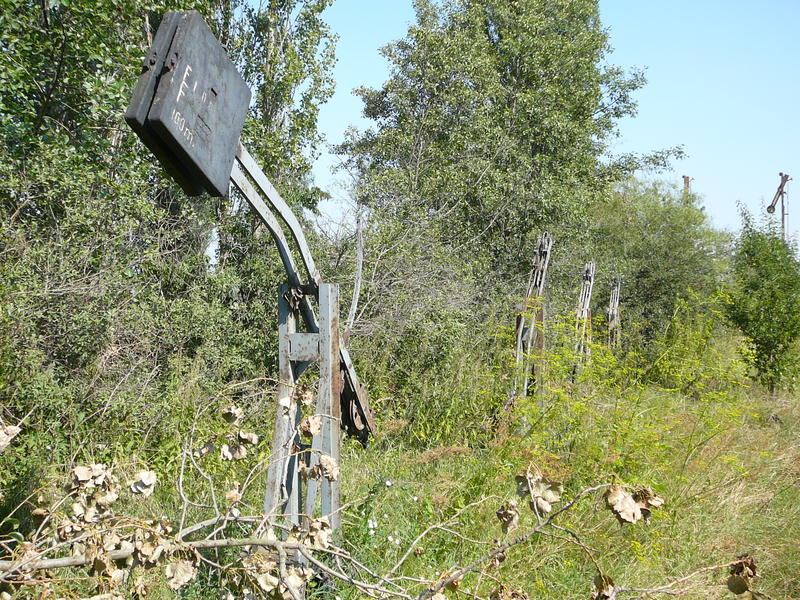 Wąsosz. Obraz agonii stacji. Nieczynne semafory wyjazdowe do Krzelowa/Ścinawy i (dawniej) Żmigrodu. Widok w kierunku południowo-zachodnim.
