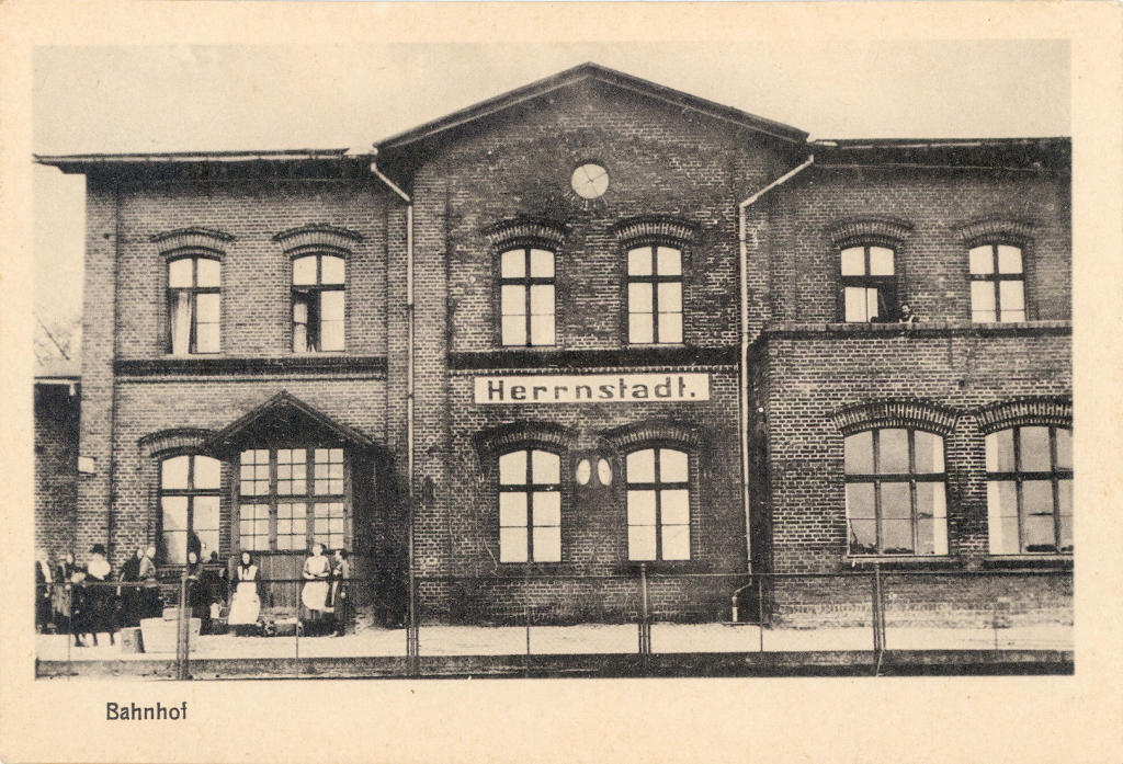 Budynek dworca od strony peronów. Na parterze, w przybudówce mieściła się nastawnia dysponująca. Widok w kierunku wschodnim: w lewo Rawicz, w prawo Żmigród, Krzelów/Ścinawa. Stara pocztówka.