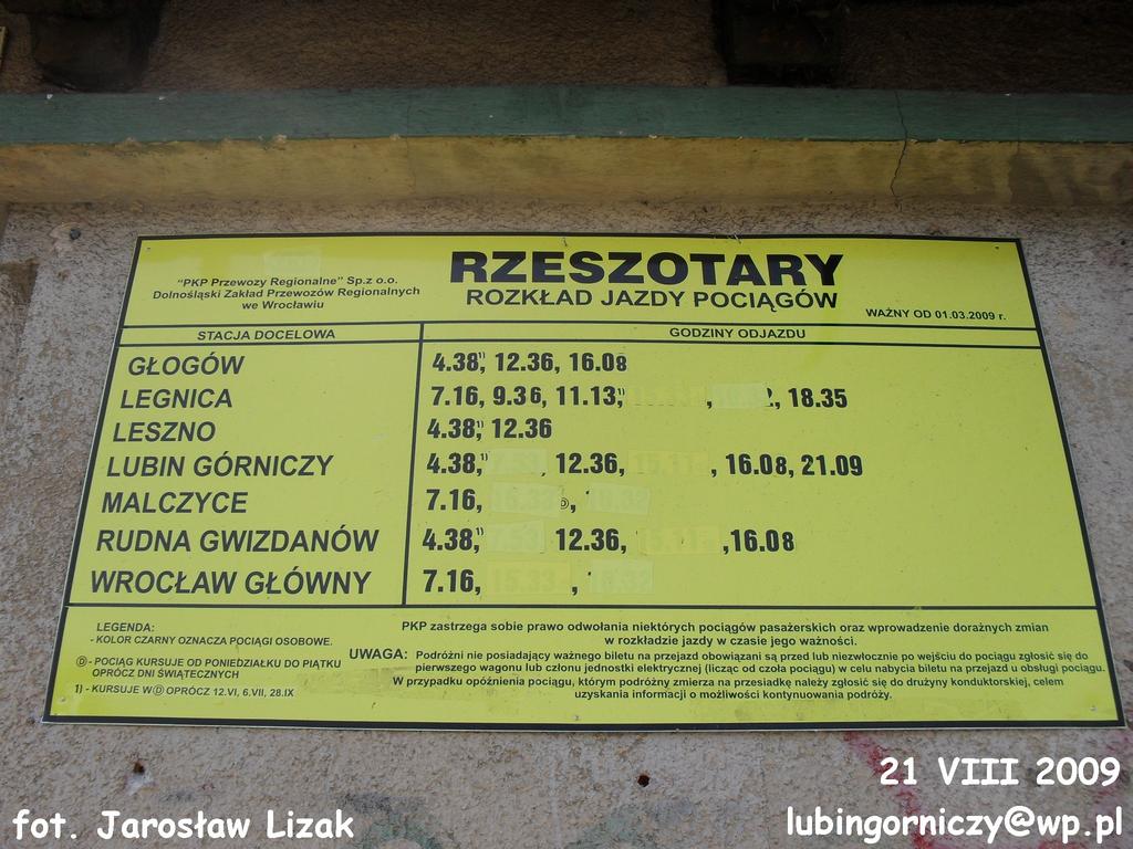 Rzeszotary, rozkład jazdy obowiązujący w 2009 roku.