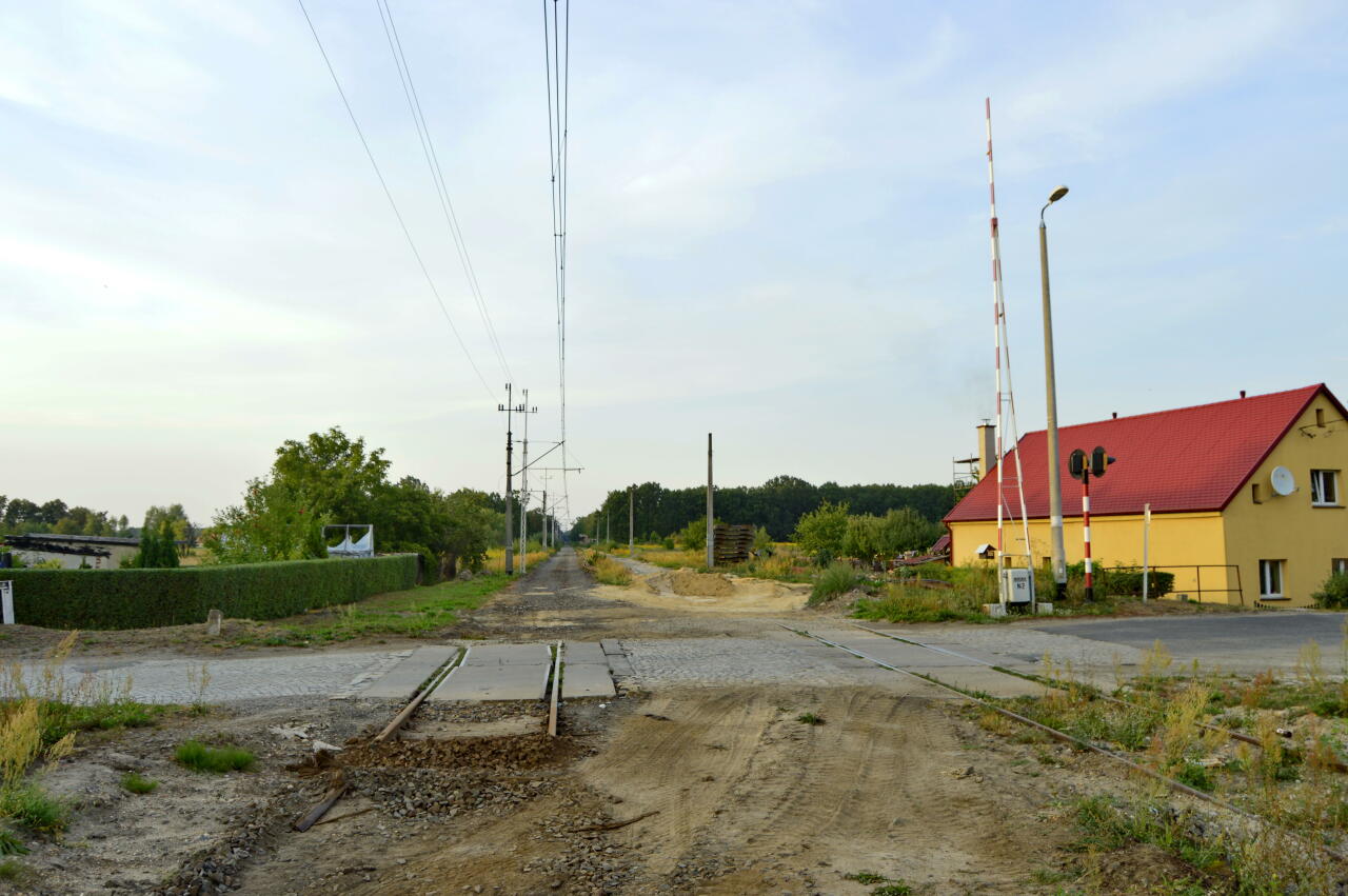 Rzeszotary podczas modernizacji. Przejazd kolejowy przez ul. Wiejską. Widok w kierunku Lubina.