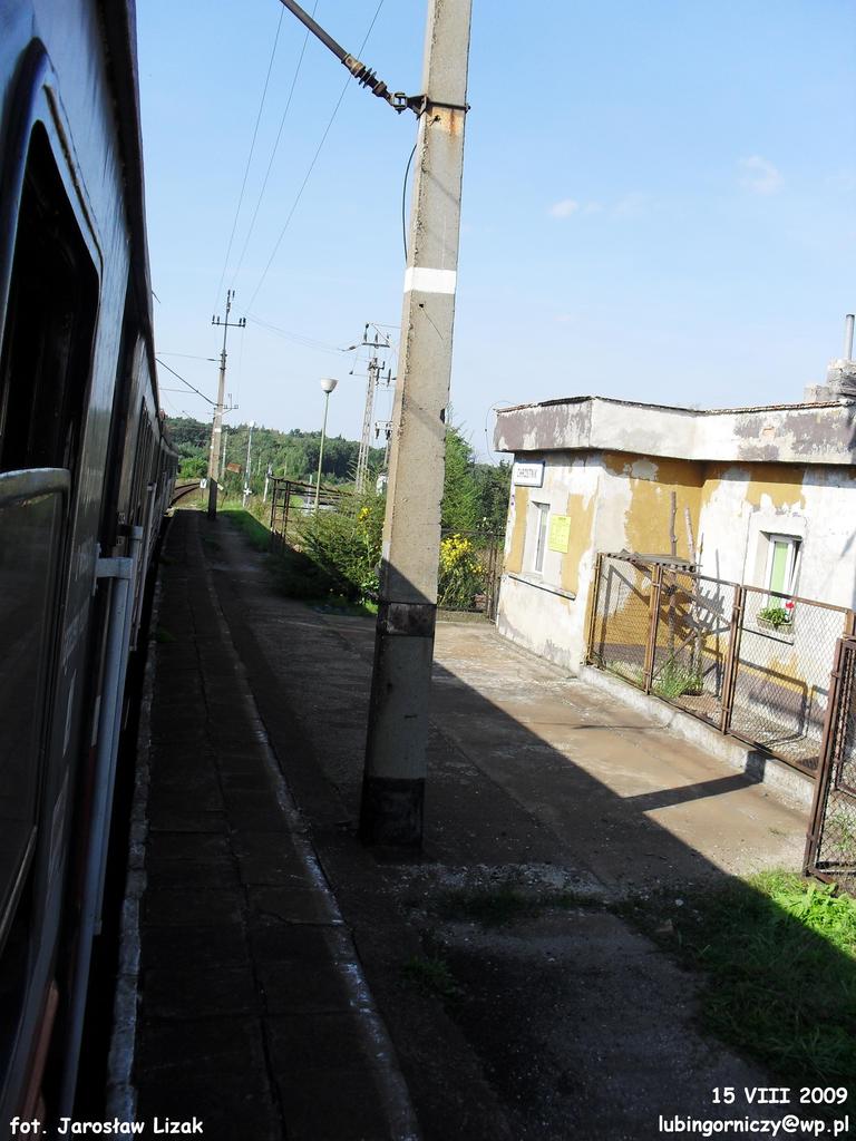 Opis ogólny: Przystanek osobowy położony dość daleko od wioski. Nie występuje w rozkładzie z 1944 r. Opis infrastruktury: Jeszcze w latach 80-tych przy stacyjnym przejeździe obsługę sprawował dróżnik przejazdowy lecz dzisiaj znajduje się tylko krzyż Św. Andrzeja i znak stopu. (info: Jarosław Lizak, 06-04-2011) Przystanek zmodernizowany w 2019 roku. Stworzono małą infrastrukturę tzn. wiatę peronową, ławki, śmietniki, gabloty informacyjne. W przeciwieństwie do lat wcześniejszych na przystanku ruszyła się wymiana pasażerska a to ze względu na dobrze dopasowane relacyjnie pociągi i dobre godziny odjazdów. (info: Jarosław Lizak 31-08-2019) |