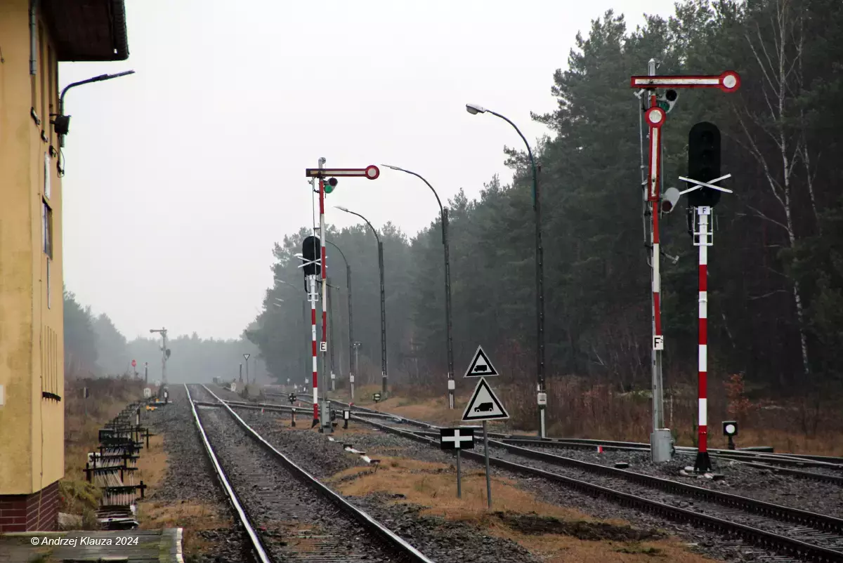 Opis ogólny: W sieciowym rozkładzie jazdy pociągów PKP na sezon 1.06.1986-30.05.1987 (w tabeli nr 356) podana jest nazwa Krzystkowice na 30 km (licząc z Zielonej Góry do Żar, za Bogaczowem, Nowogrodem Bobrzańskim, a przed Bieniowem). W analogicznym rozkładzie na sezon 27.05.1990-30.05.1992, też na 30 km, jest już nazwa Nowogród Osiedle (zamiast Krzystkowic). Na "Mapie kolejowej Polski", wydanej pod patronatem PKP w maju 1999 r. (wydanie pierwsze) przez wydawnictwo Pietruska & Partner sp. z o.o. Wydawnictwo Produktów Kartografii Digitalnej z Poznania, pokazano i kolejno opisano nazwami stacje (z Zielonej Góry w kierunku Żar, za Bogaczowem) Nowogród Osiedle, Nowogród Bobrzański, Krzystkowice, Dąbrowiec itd. Do wyjaśnienia pozostaje, czy to jest błąd wydawcy, czy rzeczywiście były odrębne stacje Krzystkowice i Nowogród Osiedle. (info: Andrzej Wysocki, 2005-07-13) --- W 1988 roku wieś Krzystkowice została połączona z wsią Nowogród Bobrzański i tak powstało miasto Nowogród Bobrzański z dwiema stacjami: Nowogród Bobrzański (km 27) i Nowogród Osiedle (km 29, dwaniej Krzystkowice). Od stacji odgałęziają się bocznice do Elewarru i Jednostki Wojskowej. (info: Szymon Goździk, 2005-09-16) Opis infrastruktury: Dwa perony jednokrawędziowe o długości ponad 200 m: 1 - dł. 210 m, obsługiwany przez tor 1 i 2 - dł. 215 m, obsługiwany przez tor 3. (info: Serg, 12-03-2011). Uruchomienie pierwszych semaforów świetlnych w dniu 8 stycznia 2025 roku. |