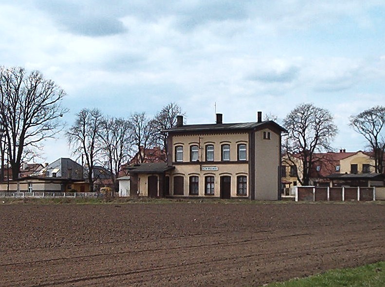 Po drugiej stronie drogi dojazdowej do stacji by tor kolejki gospodarczej obsługującej okoliczne wsie. (znalezione na mapie z 1916 r). |