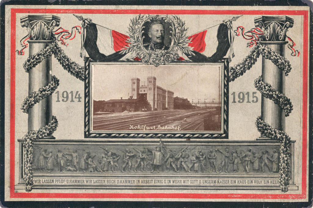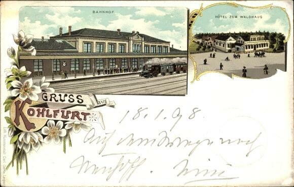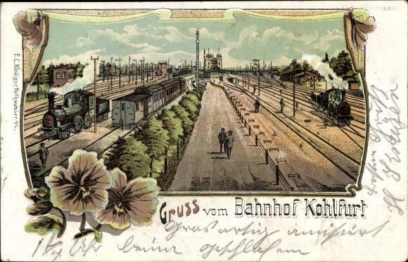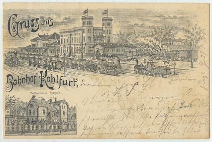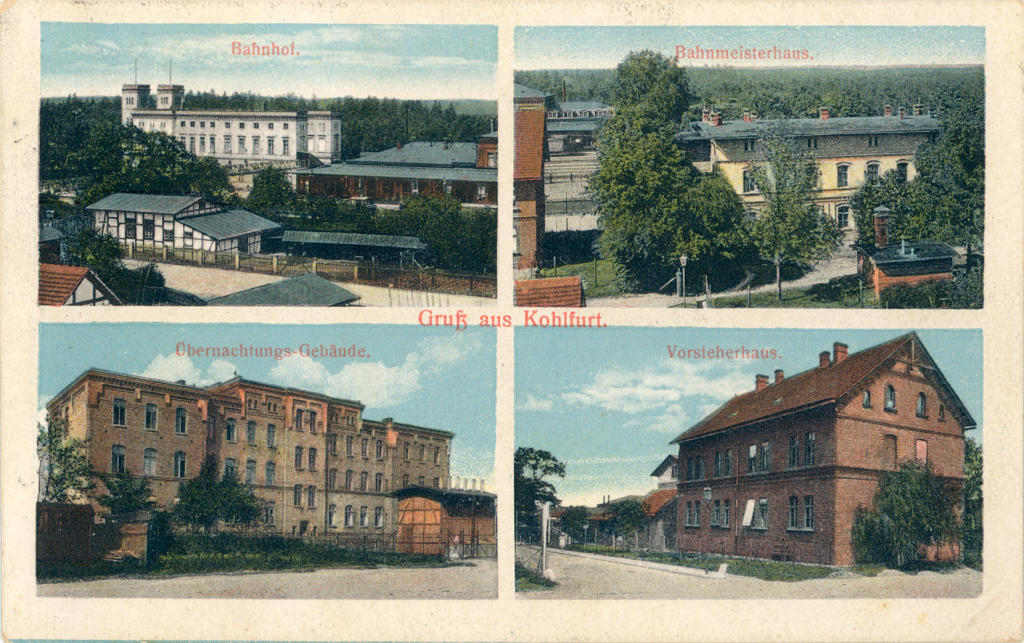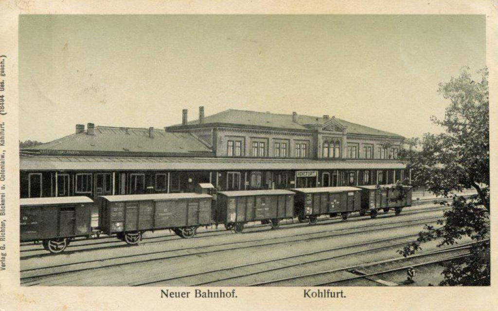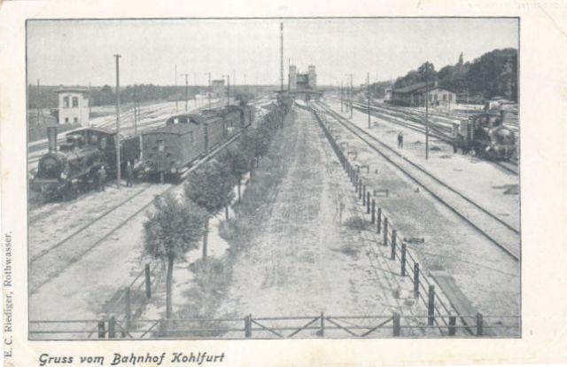 Stara pocztówka. Widok na teren stacji kolejowej od strony wjazdów z Horki, Zgorzelca i Ruszowa/Jankowej Żagańskiej.