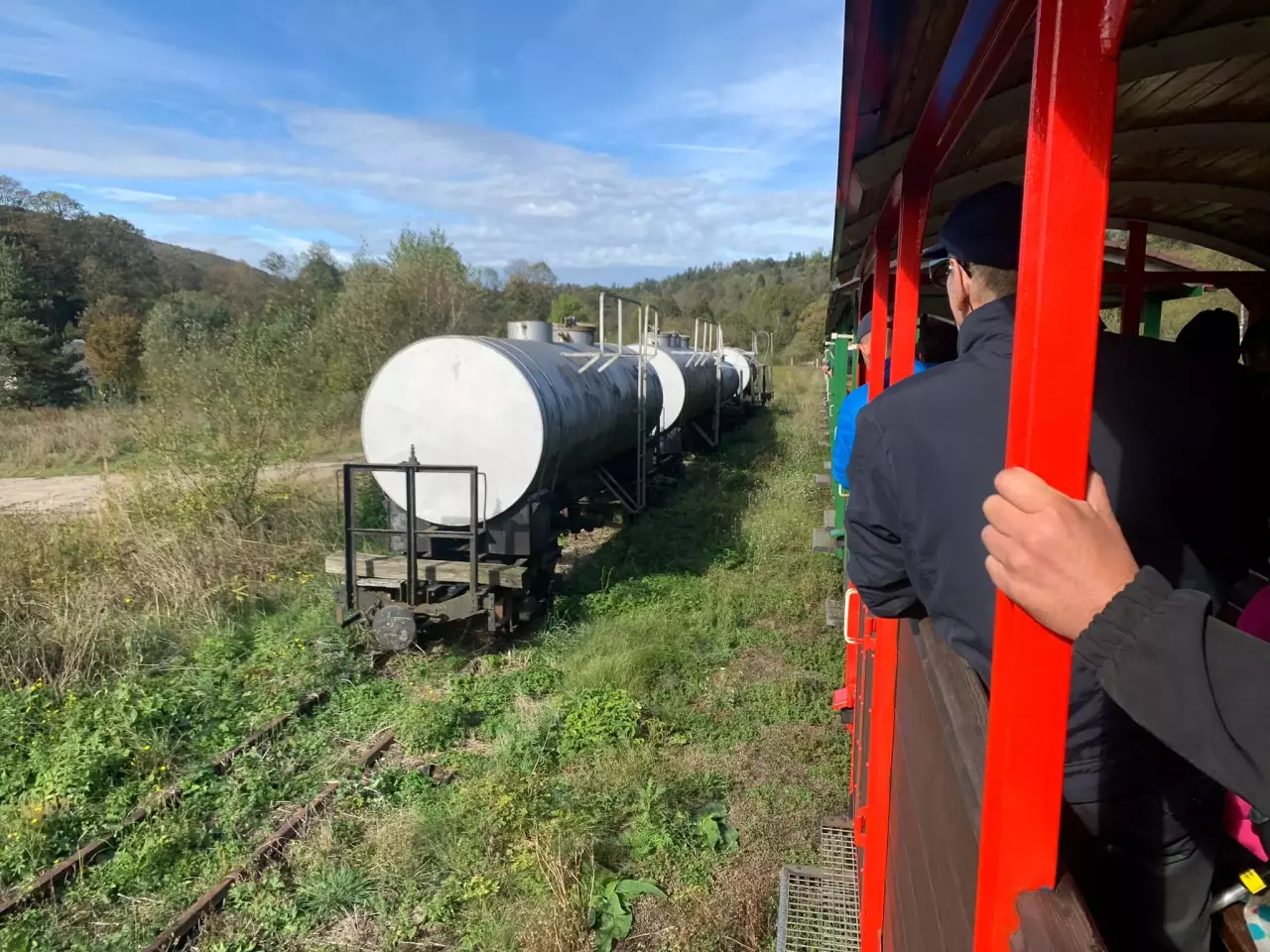 | Jeden z wielu placów składowych drewna. Po zakończeniu przewozów kolejką w 1994 roku, nadal używany - ale już z wykorzystaniem samochodów. Perony porządnego ani budynku dla pasażerów nigdy tu nie było. |