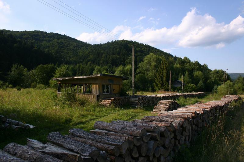Jeden z wielu na linii punktów załadunkowych drewna. Wybudowany jednocześnie z budową linii w 1959 roku. Wykorzystywany dość intensywnie do połowy lat osiemdziesiątych, potem nieco mniej. Kiedy zaprzestano przewozów w 1994 roku, drewno zaczęto wozić samochodami. W mniejszym niż wcześniej stopniu, ale działa do dziś. Tor linii rozdziela się na trzy. Dwa z nich przechodzą przy utwardzonym placu, jeden bokiem przechodzi dalej. Obecnie wszystkie zarośnięte trawą, ale prawdopodobnie wciąż w całości. Jeden budynek przypominający budkę z zapiekankami z lat osiemdziesiątych. W przeszłości jako budynek socjalny, obecnie chyli się ku upadkowi, ale jeszcze stoi, choć już bez szyb i części ścian. |