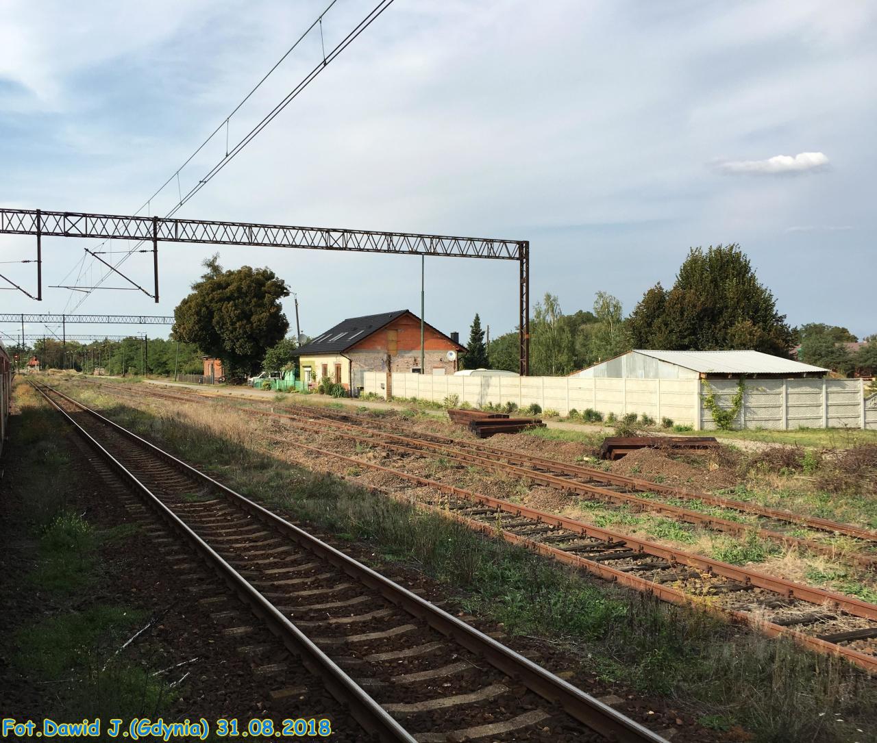 | budynki dworcowe: | 2017: Budynek dworca rozebrany tuż po wojnie. Bezpośrednio przy peronach stoi czynna nastawnia i zamknięte toalety. | |