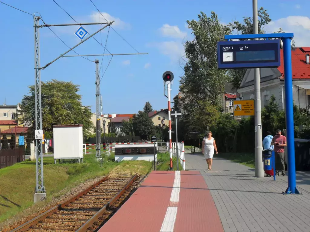 | Przystanek wyposażony w elektroniczny system informowania podróżnych o odjazdach/przyjazdach pociągów (info: Mateusz Rozmus, 22-08-2013) |