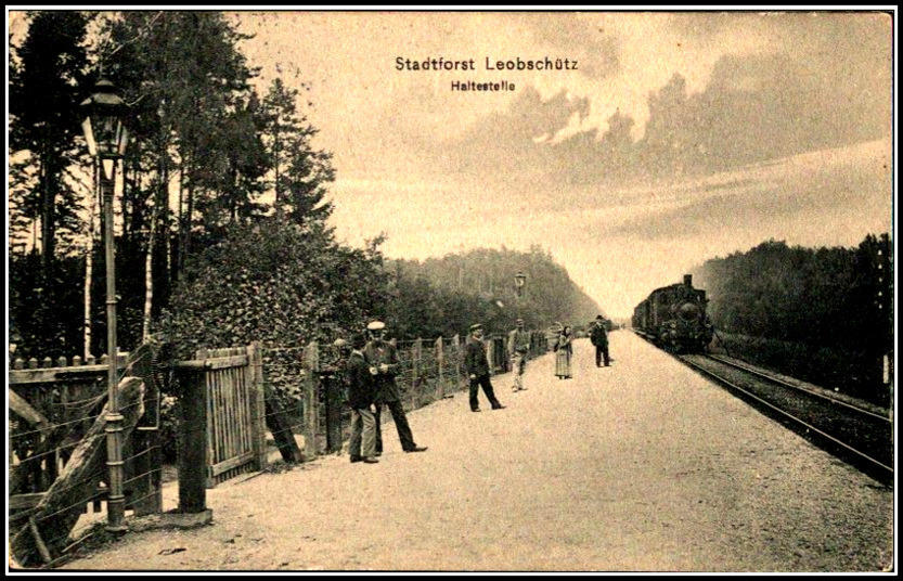 Teren przystanku. Z prawej strony peron, z lewej budynek mieszkalny. Widok od strony stacji Głubczyce. Stara pocztówka.
