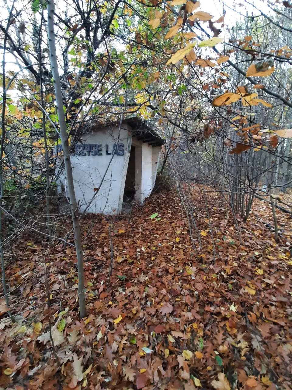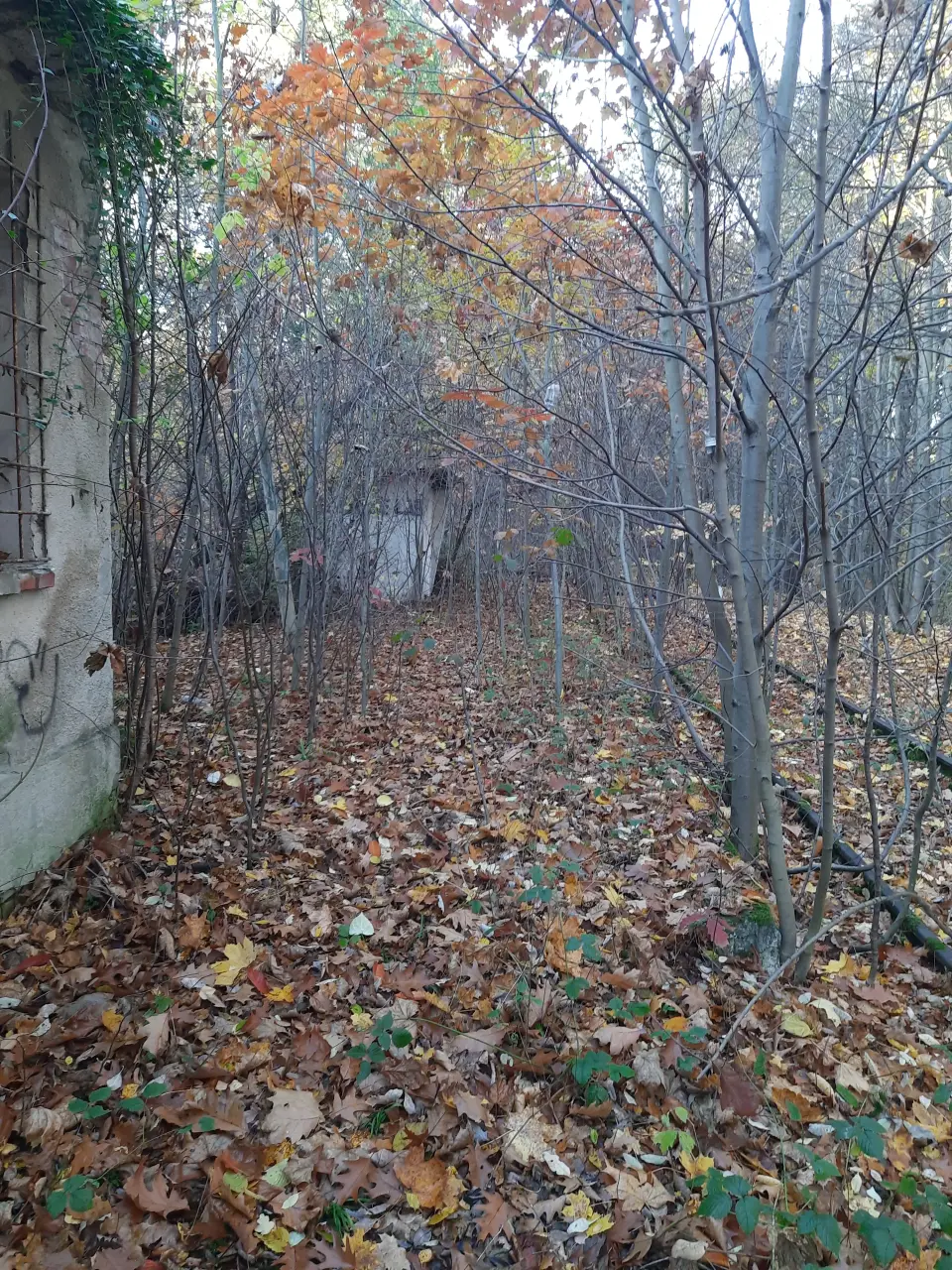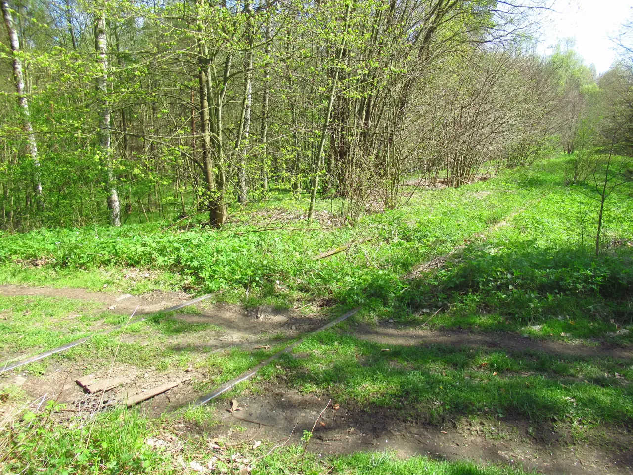 Głubczyce Las - toalety oraz dawny budynek mieszkalny. W prawo znajduje się zarośnięty peron. Kierunek północny.