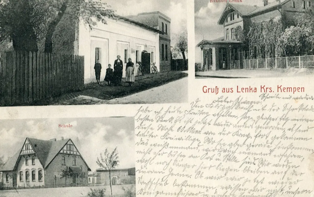 Pocztówka wielowidokowa. W prawym, górnym polu budynek dworca od strony peronów i wjazdu z Kluczborka. W przybudówce, na parterze mieściła się nastawnia dysponująca.