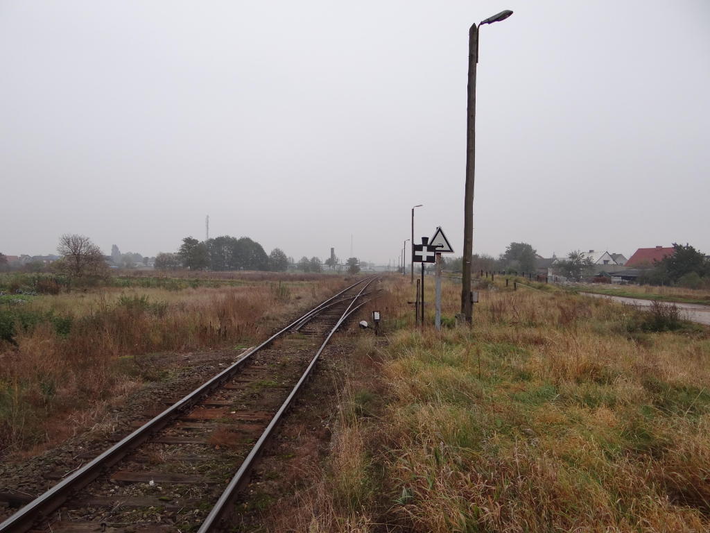 Po lewej bocznica. Widok w kierunku stacji Zbąszyń; 66,3 km.