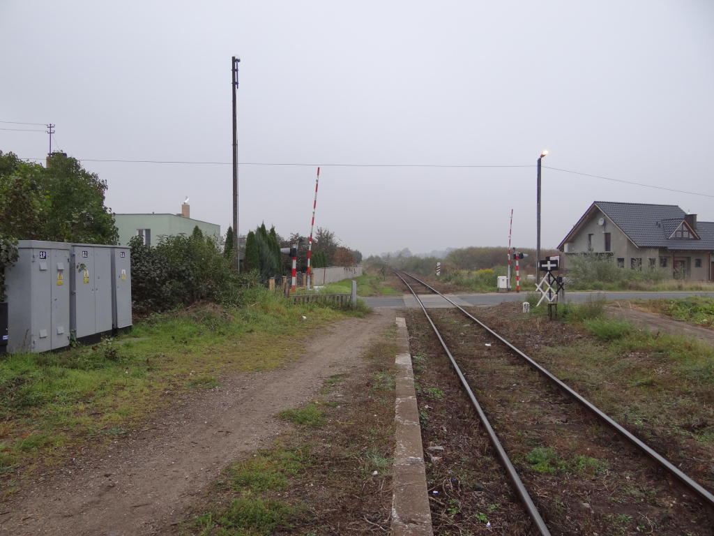Bocznica. Rampa boczna o długości ok. 40 m. Widok w kierunku Wolsztyna; 66,5 km.