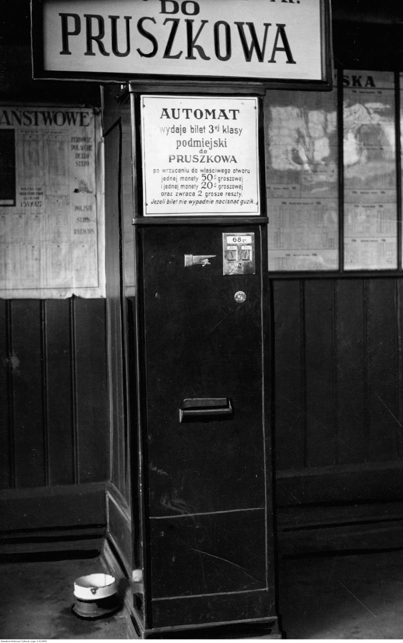 "Automat wydający bilety podmiejskie do Pruszkowa na Dworcu Głównym w Warszawie".