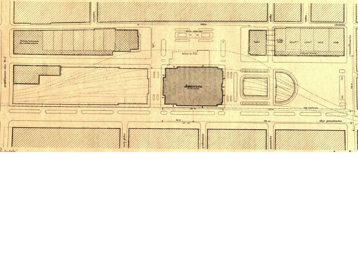 Jeden z proponowanych projektów dworca z roku 1931, plan sytuacyjny 1 alternatywa. Źródło "Inżynier Kolejowy" z lat 30 XXw.