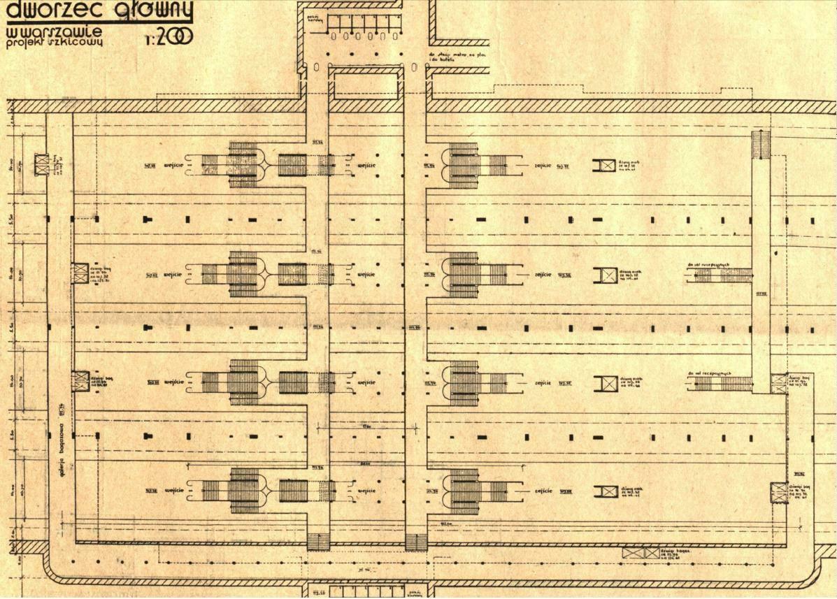 Jeden z proponowanych projektów dworca z roku 1931, projekt części podziemnej. Źródło "Inżynier Kolejowy" z lat 30 XXw.