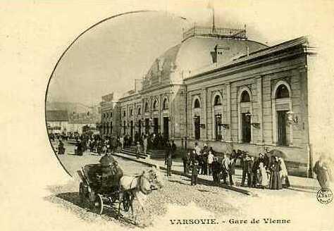 Jedna z najstarszych fotografii dworca Warszawa Wiedeńska, od strony miasta. Widać (nieco rozmazany) tramwaj konny oraz prawdopodobnie kozioł oporowy, którym zakończony był tor. Początkowo tramwaj ten nazwany był Drogą Żelazną Konną i został wybudowany przez Rosyjskie Towarzystwo Dróg Żelaznych specjalnie w celu połączenia trzech głównych dworców kolejowych Warszawy: Wiedeńskiego, Petersburskiego i Terespolskiego.