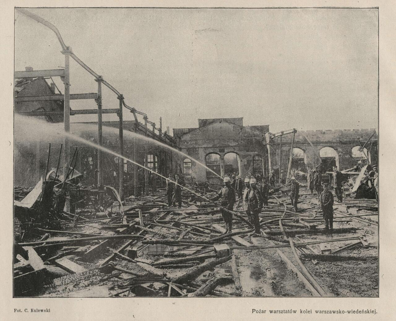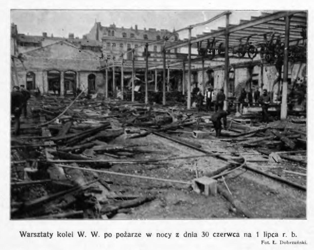 Warsztaty kolei warszawsko-wiedeńskiej po pożarze w nocy 30.06./01.07. 1902 roku.