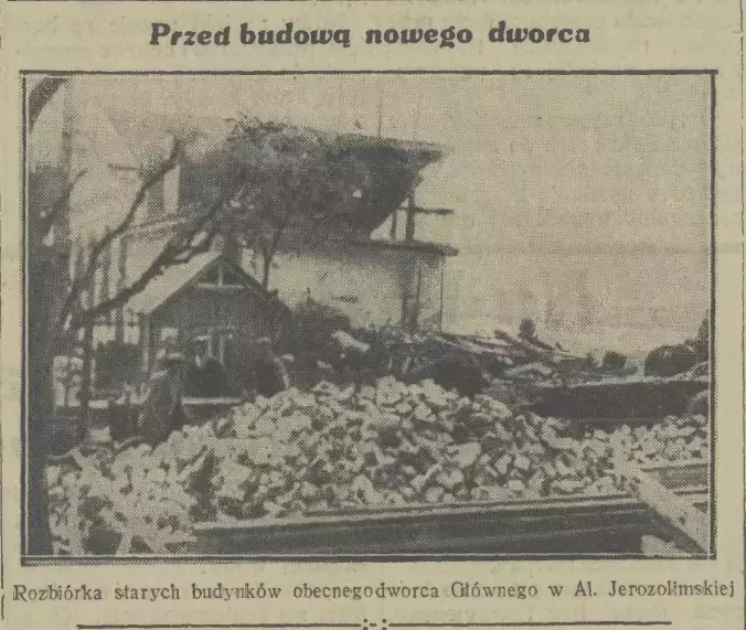 Rozbiórka starych budynków dworca - Kurier Czerwony 3 czerwca 1931.