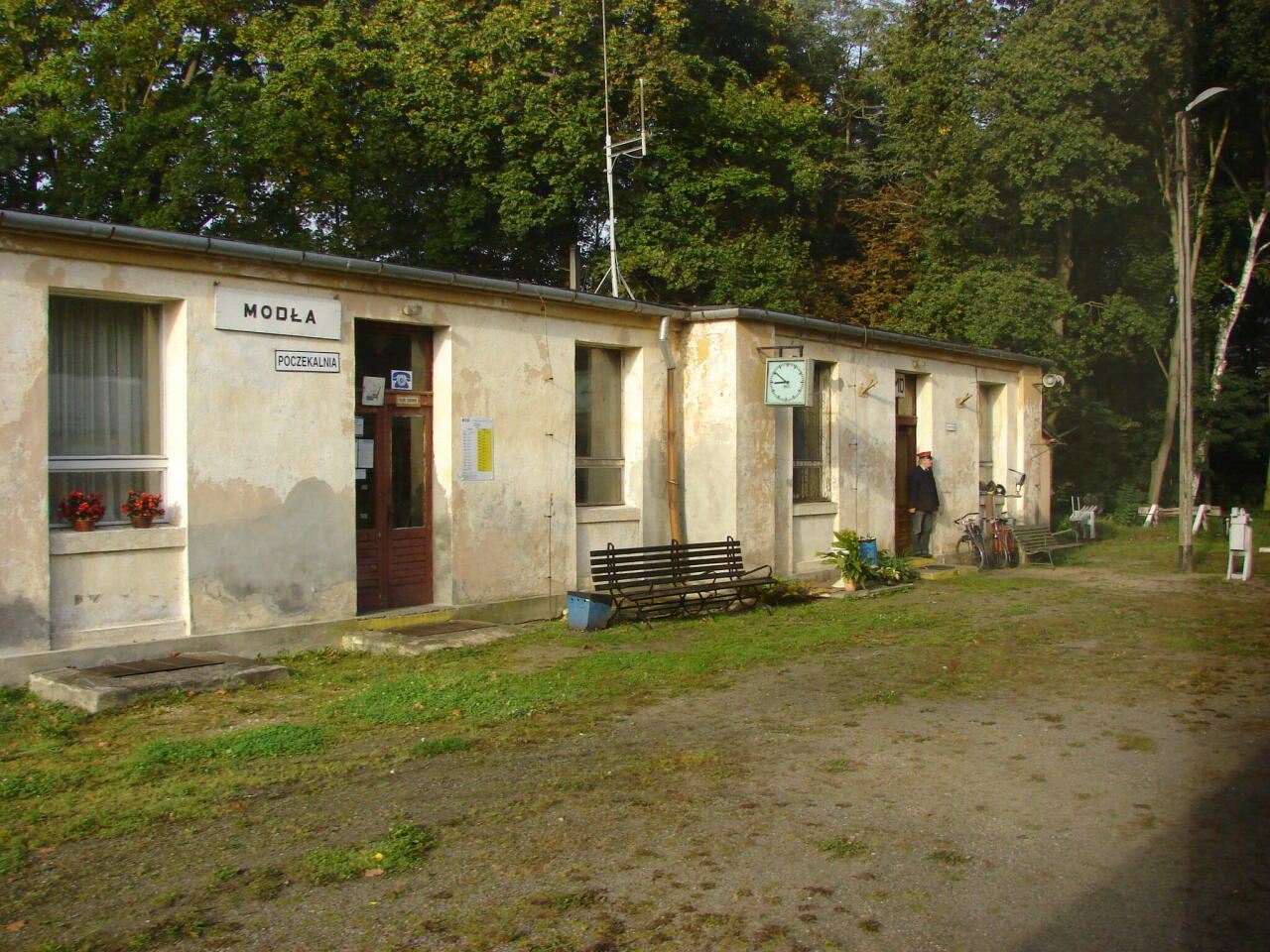 Stacja PKP Modła. Budynek dworcowy. Widok od strony peronów.