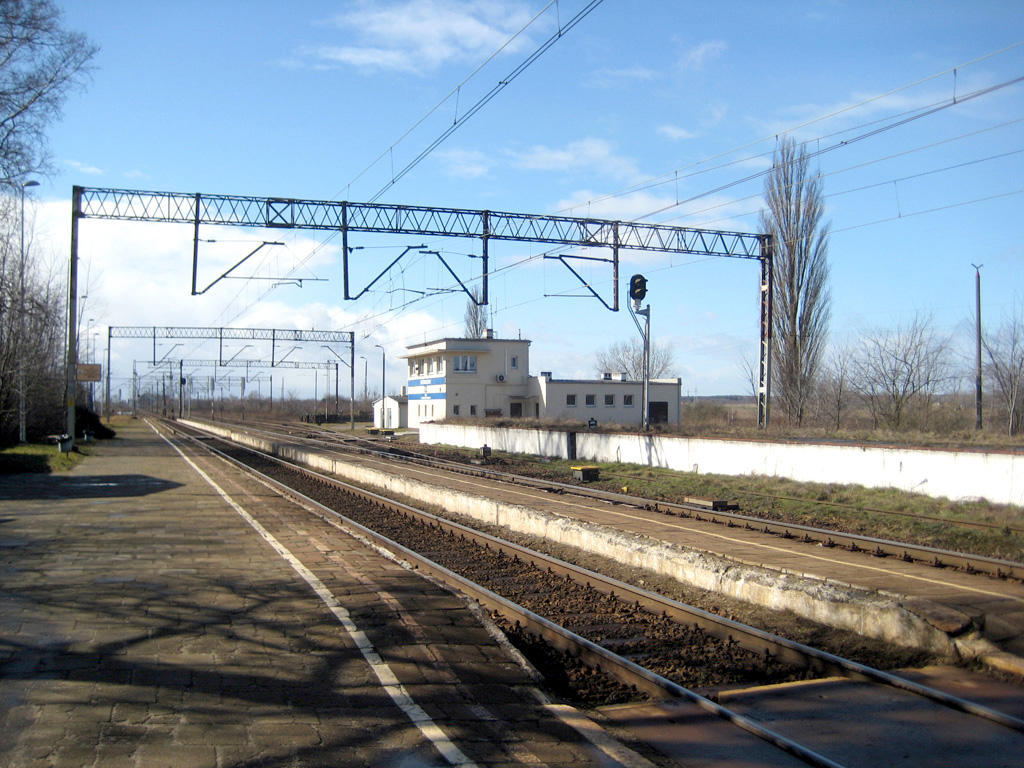Peron 1 i nastawnia. Widok w kierunku Inowrocławia.