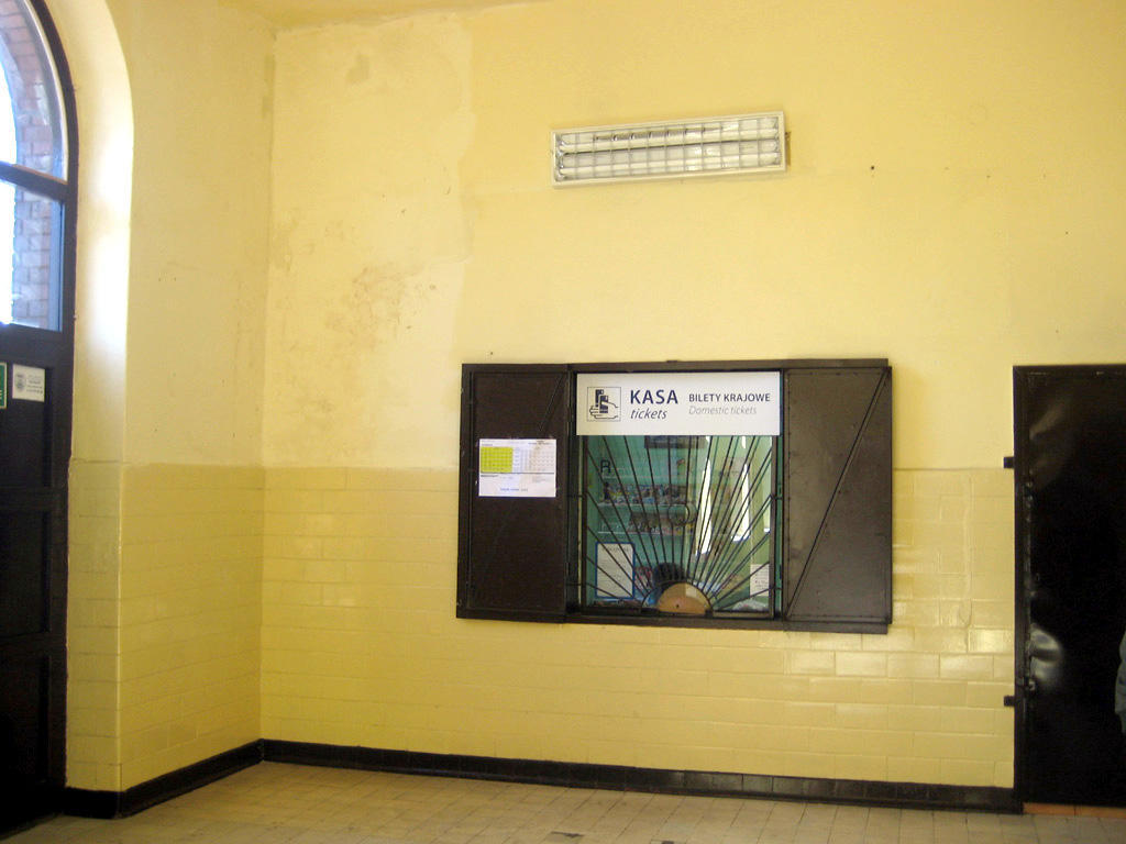 Tymczasowa kasa biletowa na okres przebudowy budynku dworcowego.