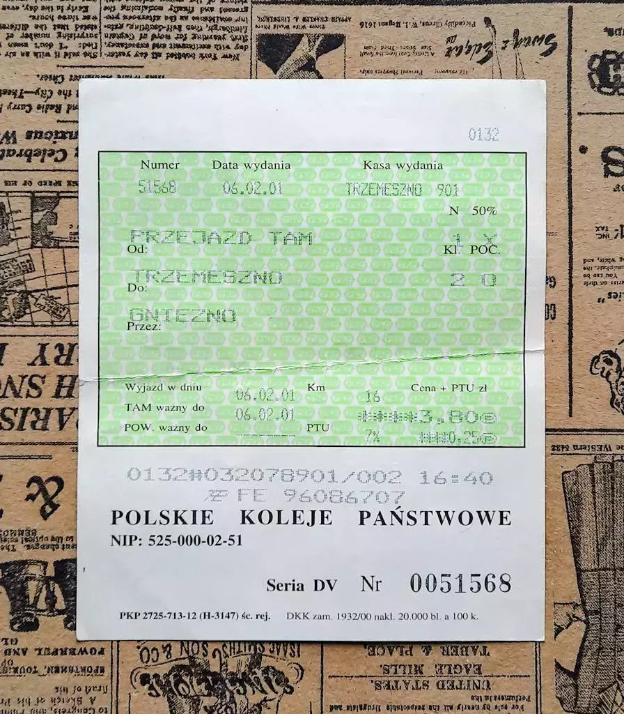 Bilet blankietowy wydany na stacji Trzemeszno.