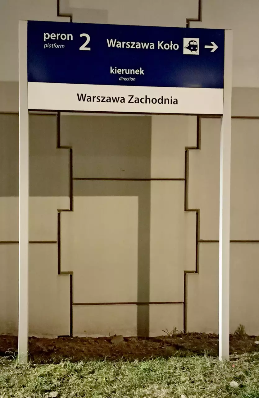 Dynamiczna: infokioski, wyświetlacze, megafony, zegary; Statyczna: gabloty, peronowe tablice małe i duże. Napisy z nazwą przystanku na wiatach peronowych. |