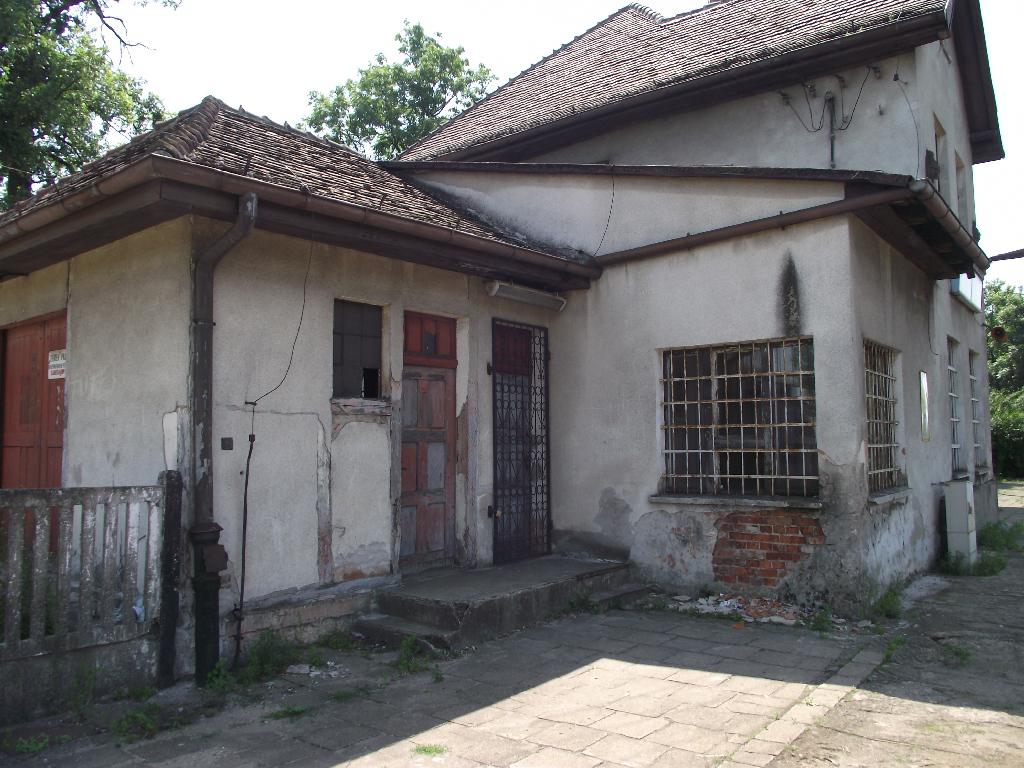 Budynek dworcowy i budynek WC. Obiekty widoczne od strony torów. Widok w kierunku Inowrocławia.