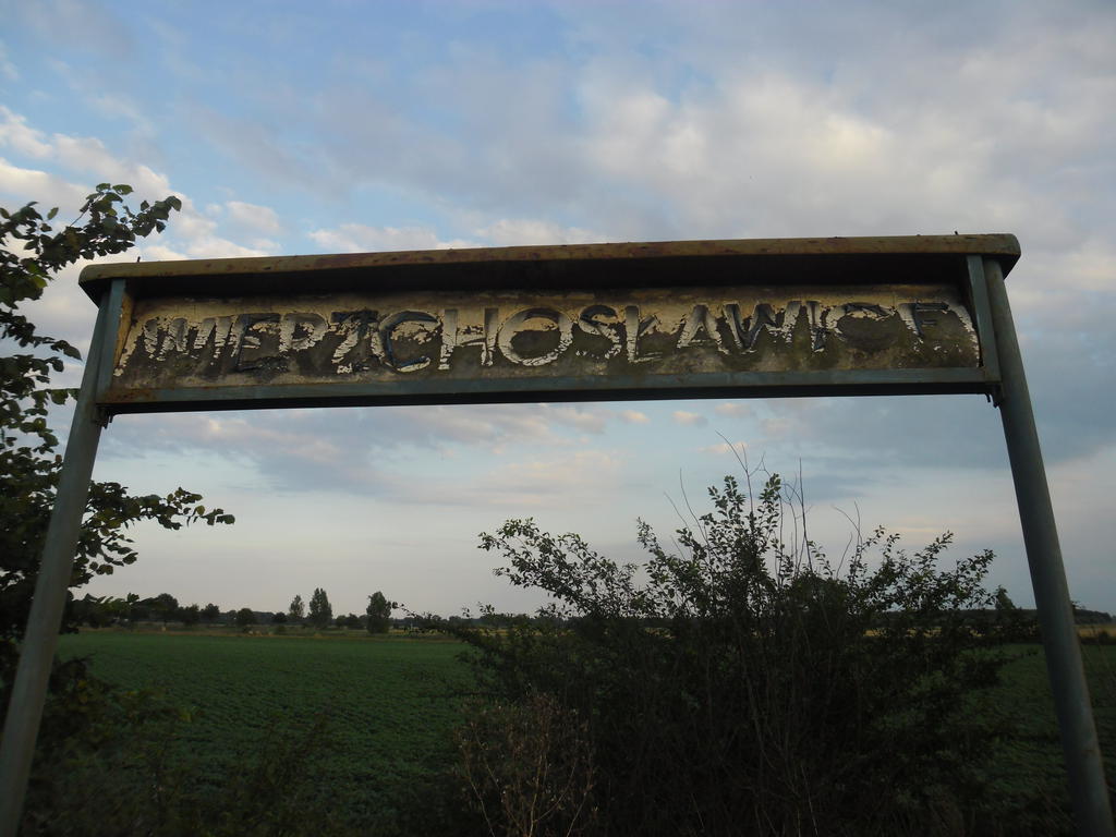 Widok na stację w Wierzchosławicach, z prawej strony sporadycznie używana bocznica firmy CYKORIA S.A. Kierunek Inowrocław.