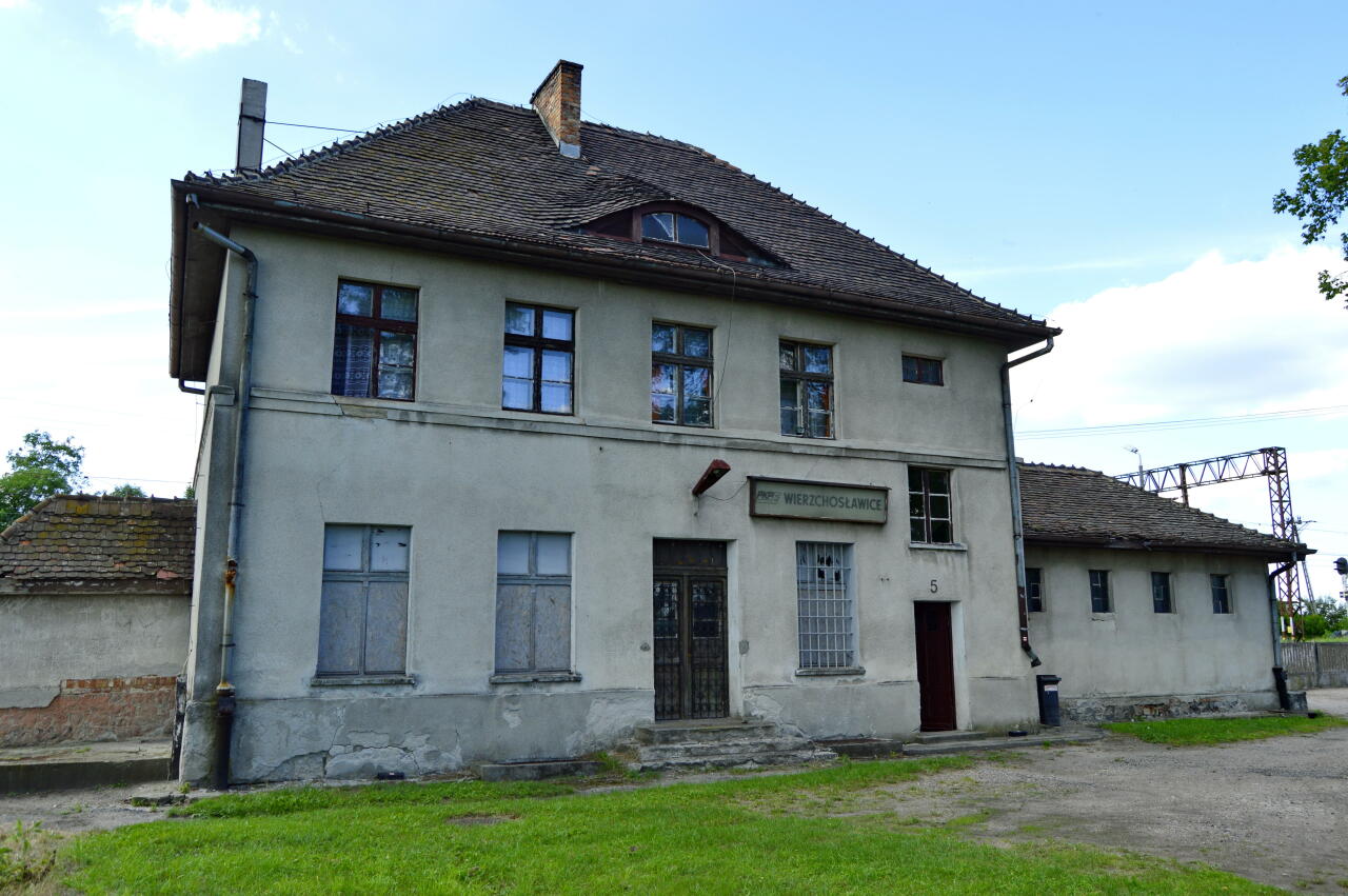 Niestety budynek dworca w Wierchosławicach nie jest w najlepszym stanie. Widok od strony peronu i wjazdu z Torunia.