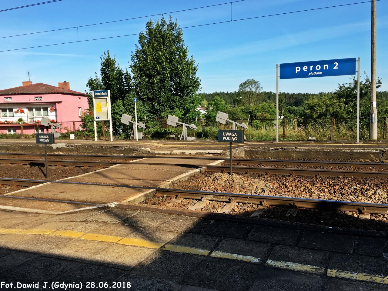 "Jm" (dysponująca, w budynku dworca) "Jm1" (wykonawcza, od strony Biskupca Pom.) Obie nastawnie wyposażone są w urządzenia mechaniczne, scentralizowane z sygnalizacją świetlną, przy czym dwa rozjazdy od strony Iławy posiadają napędy mechaniczne, ręczne. |