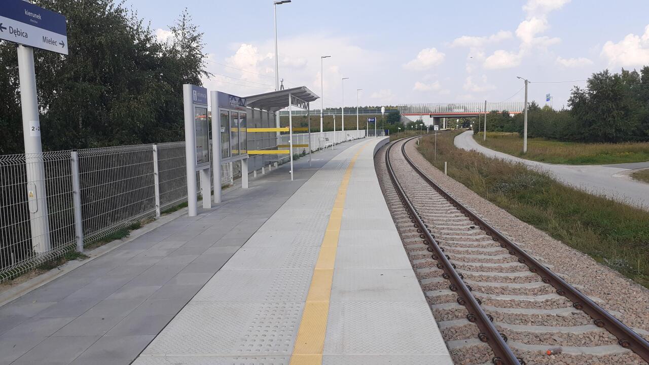 Przystanek nadal jest w budowie. Jeden peron jednokrawędziowy, postawiony po prawej stronie toru. Tuż przed początkiem peronu (od strony Mielca) stoi tarcza ostrzegawcza ToA dotycząca semafora wjazdowego do stacji Dębica Towarowa. Na peronie nie zamontowano jeszcze wiat, ławek ani tablic informacyjnych. Przystanek, jak i cały remontowany odcinek, ma być oddany do użytku we wrześniu br. |