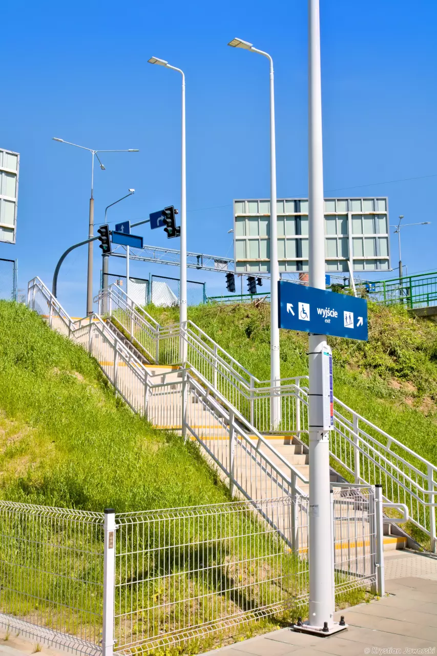przejście podziemne: nie ma i nie było przejście nadziemne: istnieje jako wiadukt w ciągu ul. Chełmińskiej (dojście możliwe od strony ul. Gdyńskiej przy przystanku PKS) windy: nie ma i nie było |