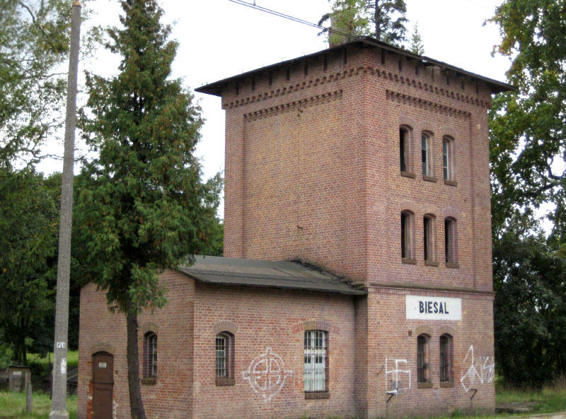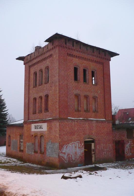 Biesal- wieża wodna w stanie już lekkiej ruiny.
