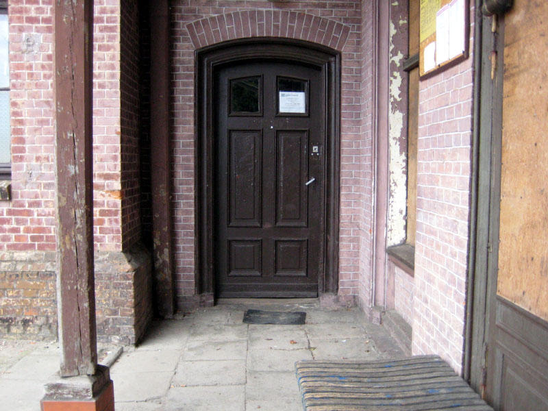 Stacja PKP Biesal. Aktualne drzwi wejściowe do budynku dworcowego.
