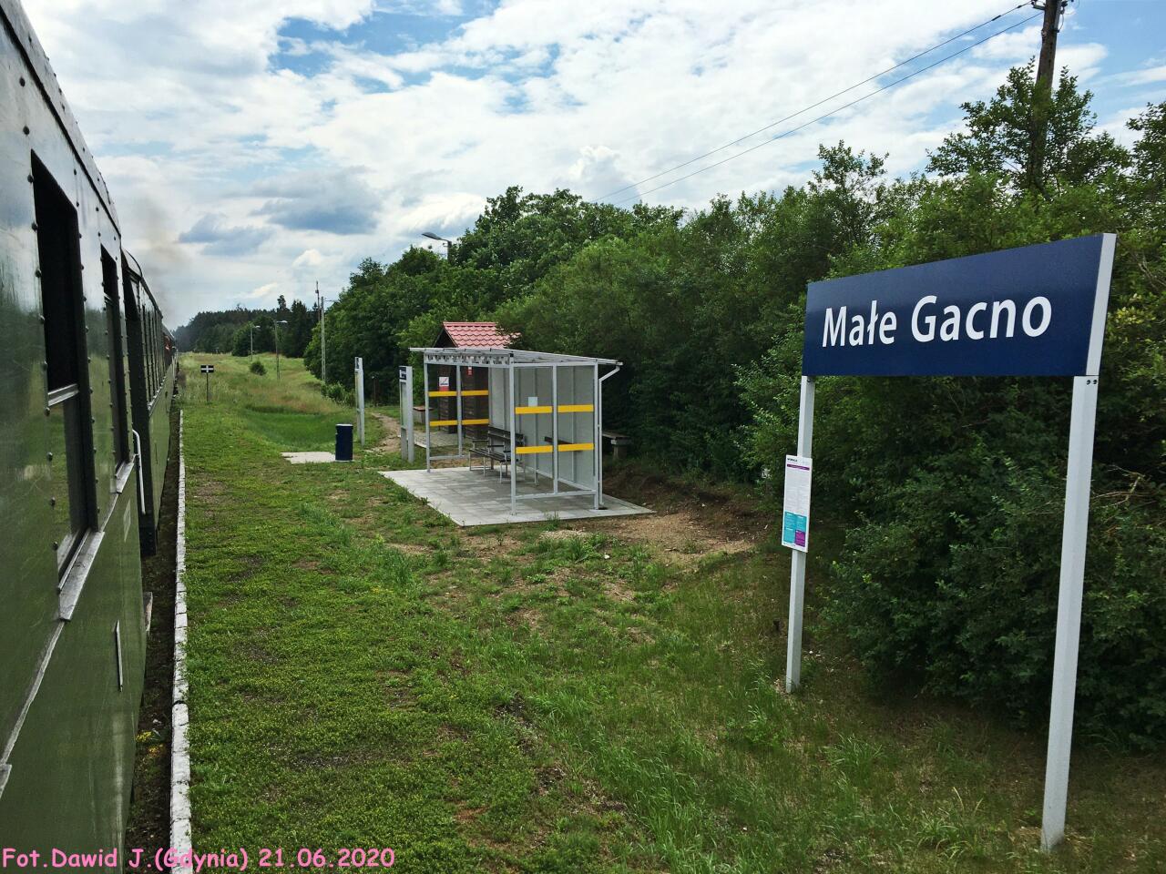 Opis ogólny: Małe Gacno było dawniej mijanką z dwoma jednokrawędziowymi peronami ziemnymi.Wiata przystankowa znajduje się na peronie przy nieistniejącym torze mijankowym(głównym dodatkowym)po którym pozostało bardzo wyraźne starotorze. (info: Radosław Palmowski, 05-07-2011) Opis budynków: Nowa wiata o konstrukcji drewnianej, pokryty blacho-dachówką ustawiona na peronie (info: Andrzej, 2006-06-23) |